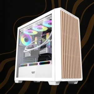 A Darkflash DS900WD egy olyan számítógépház, amelyet olyan felhasználók számára terveztek, akik praktikus megoldásokat keresnek. Az edzett üveg oldallap és a fa előlap jó láthatóságot biztosít az alkatrészek számára, és az egész háznak egyedi megjelenést kölcsönöz. Lehetővé teszi ATX, M-ATX és ITX formátumú alaplapok beépítését, így nagy rugalmasságot biztosít számítógépe építése során. Tágas kialakításának és többféle rögzítési lehetőségének köszönhetően kényelmes készletösszeszerelést és jó légáramlást biztosít.