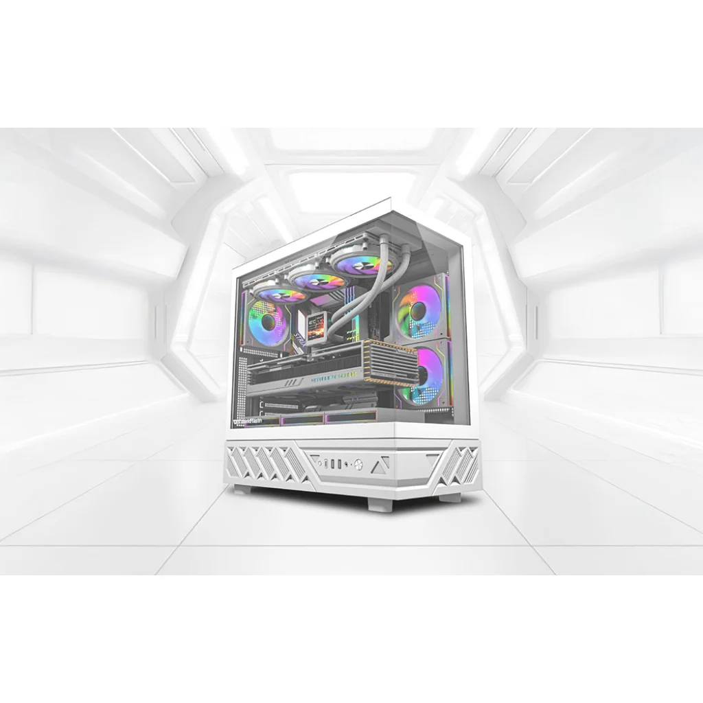 A DarkFlash DS950 egy ATX számítógép-ház, amely lehetővé teszi, hogy erőteljes konfigurációt építsen játékokhoz és egyéb célokra. A kialakítás 270°-os panorámaképet kínál, így a számítógép belseje két oldalról teljes mértékben látható – így érdekes módon mutathatja be a kiválasztott alkatrészeket, például az RGB-megvilágításúakat. Emellett gazdag portválaszték áll rendelkezésre, beleértve az USB-C 3.2 Gen 2-t is. A ház támogatja az ATX, Micro-ATX és ITX alaplapokat, mérete 450 × 222 × 465 mm. 0,5 mm vastag SPCC fémlemezből készül, amely stabil és szilárd alapot biztosít a fejlett konfigurációkhoz.