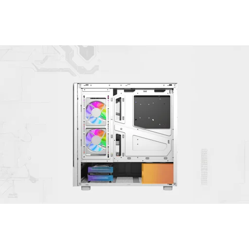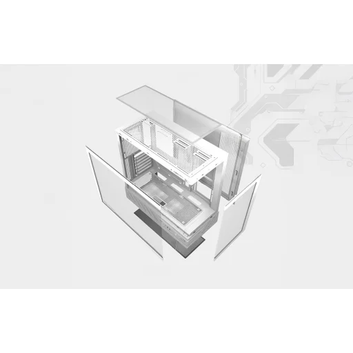 A ház két átlátszó panellel rendelkezik, amelyeknek nincs függőleges profilja, így széles kilátást biztosítanak az alkatrészekre. Ez a kialakítás érdekes vizuális effektusokat tesz lehetővé – például bemutathatja az RGB ventilátorokat vagy a vízhűtést egy kijelzővel. Adjon egyedi karaktert a számítógépének!