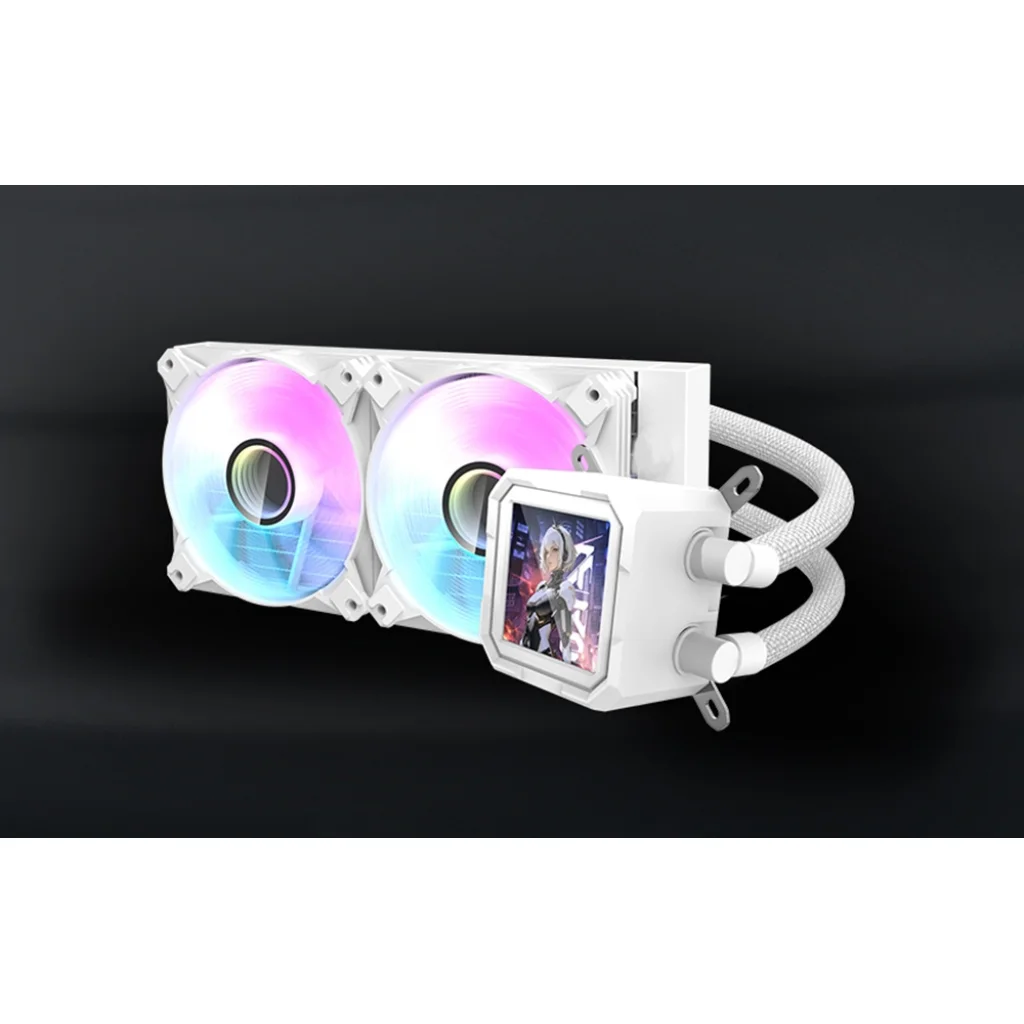 A hűtő lenyűgöző, 320 x 320 pixel felbontású IPS LCD-képernyővel van felszerelve, amelyet négyzet alakú formavilága különböztet meg. A hagyományos kerek képernyőkkel ellentétben ez a modell természetesebb, esztétikusabb adatmegjelenítést kínál, harmonikusan illeszkedve a játék PC-k modernista megjelenéséhez. Az IPS-panel valósághű színvisszaadást és kiváló olvashatóságot garantál bármilyen szögből. A Darkflash DV240S segítségével tiszta és kényelmes hozzáférést nyerhet a hardverére vonatkozó legfontosabb információkhoz.