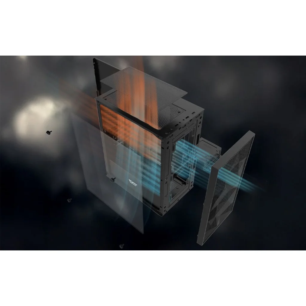 A Darkflash M305 Mesh azok számára jelent lehetőséget, akik értékelik a minimalista dizájnt, a funkcionalitást és a számítógép konfigurációjának szabadságát. Az előlap ipari stílusban készült, teljes hálós panellel, amely kiváló légáramlást biztosít a tokba.