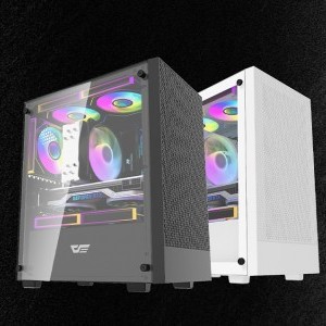 A Darkflash M305 egy aprólékosan megtervezett Micro-ATX számítógépház, amely a kompakt méreteket a funkcionalitással és a futurisztikus dizájnnal ötvözi. Olyan felhasználók számára készült, akik jó ár-érték arányt keresnek, anélkül, hogy kompromisszumot kötnének a légáramlás, a hardverkompatibilitás és az esztétika terén. Az edzett üvegből készült átlátszó oldalsó panel lehetővé teszi az alkatrészek hatékony megjelenítését, amit biztosan értékelni fognak az RGB háttérvilágítás vagy az elegáns készletek rajongói. Mostantól a játéktered stílusosan és elegánsan fog kinézni!