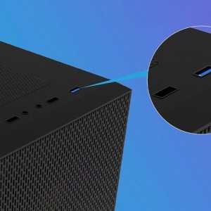 Gyors hozzáférés a portokhoz: A ház felső szélén a be- és kimenetek intuitív panelje található, köztük egy fejlett USB 3.0 csatlakozó. Ez lehetővé teszi a gyors fájlátvitelt és a mobileszközök kényelmes töltését. A portok felső elhelyezkedése lehetővé teszi a kényelmes használatot, függetlenül attól, hogy a számítógép hol áll - az asztalon vagy az asztal alatt.