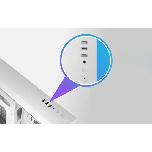 Kényelmes hozzáférés a portokhoz: Az előlapon a portok áttekinthető és szervezett elrendezését találja, köztük egy USB 3.0 és két USB 2.0 csatlakozót, amelyekkel gyorsan hozzáférhet az adatátvitelhez és a perifériák töltéséhez. Ezáltal a tartozékok és a külső memória csatlakoztatása gyors és kényelmes.