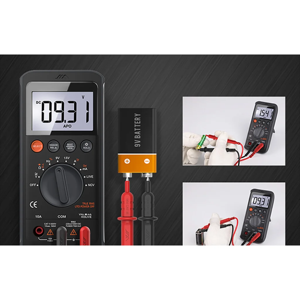 A JIMI Home JM-G3401 lehetővé teszi az akkumulátor feszültségének mérését is - egyszerűen csatlakoztassa a fekete (-) és piros (+) vezetékeket az akkumulátorhoz. Önálló visszaállító biztosítékaival is rendelkezik, amelyek 3-5 másodperc alatt helyreállnak, ha kiégnek. Ezenkívül az LCD kijelző tájékoztatja Önt a készülék működéséről. A multiméter kijelzője háttérvilágítással is rendelkezik, amelyet a HOLD gomb 2 másodpercig történő lenyomásával kapcsolhat be.