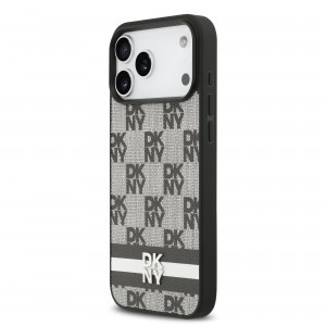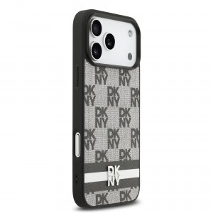 A DKNY PU bőr kockás minta és csíkos prémium hátlap elegáns és jellegzetes mintázattal rendelkezik, melyet egy fémes DKNY logó egészít ki.