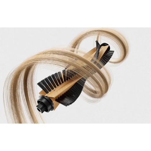 A fejlett Dual Anti-Tangle rendszert olyan otthonok számára tervezték, ahol a haj és az állati szőr problémát jelent. A speciálisan tervezett főkefe, amely gumiból és sörtékből áll, valamint fogazott szerkezetű, hatékonyan gyűjti össze a hajat és megakadályozza annak összegabalyodását, így fenntartva a teljes szívóteljesítményt. Az oldalsó kefe összegabalyodás nélkül működik, ami zökkenőmentes, problémamentes tisztítást és kevesebb kézi karbantartási igényt jelent.