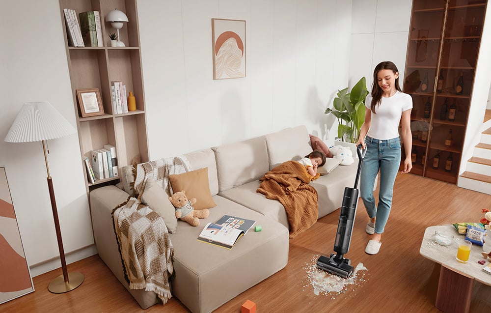 A Dreame G10 Pro a hatékony és kényelmes napi takarításhoz készült. A készülék egyesíti magában a nagy szívóerőt, a száraz és nedves szennyeződések egyidejű összegyűjtésének képességét és a csendes működést, amely nem zavarja a háztartás tagjait. A 900 ml-es tiszta víztartállyal és 35 perces csendes működést lehetővé tevő akkumulátorral a G10 Pro akár 200 m² nagyságú terület tisztítására is képes, gyakori újratöltés vagy újratöltés nélkül.