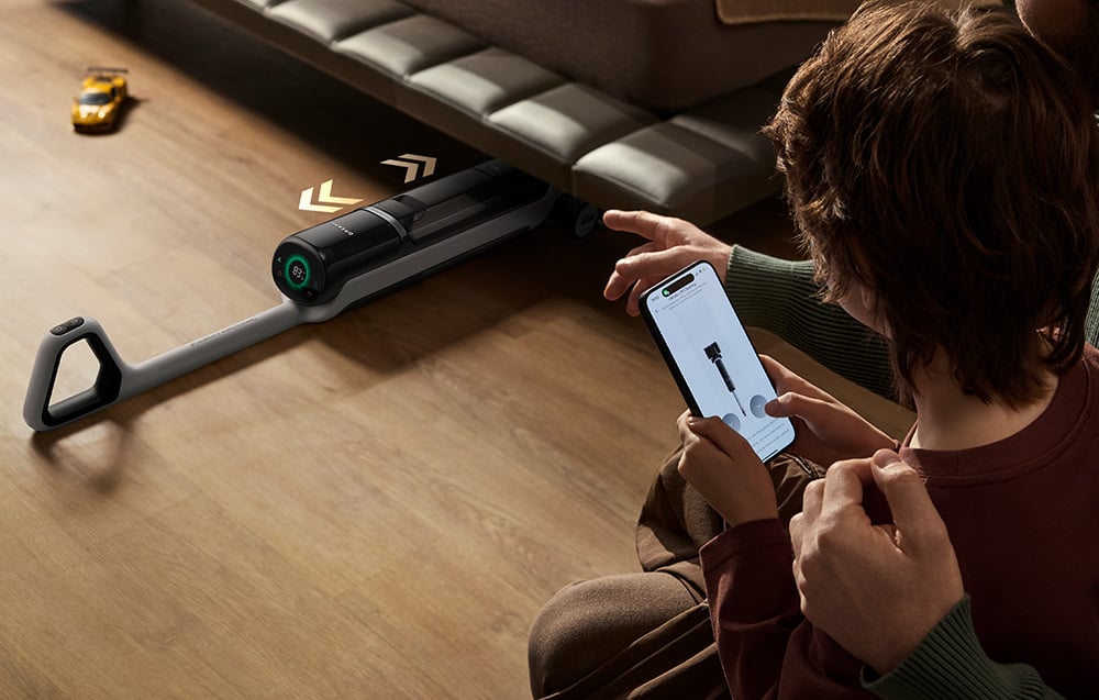 Tisztítási kényelem: A 180°-os Lie-Flat Reach kialakítás lehetővé teszi a porszívó számára, hogy alacsony bútorok alatt is hatékonyan mozogjon.