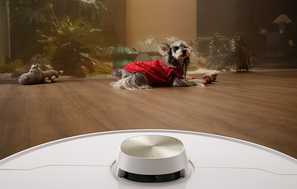 A Dreame L40s Pro Ultra intelligenciája a Pathfinder™ rendszeren alapul, amely precíz térképeket készít akár négy emeletről is. Beépített 3D strukturált fénye és AI algoritmusai több mint 180 féle tárgyat képesek felismerni, és ehhez igazítani az útvonalat. Legyen szó a padlón felejtett kávészemekről, játékokról, kábelekről vagy akár háziállatokról, a robot intelligensen elkerüli azokat (lásd a mellékelt képeket, ahol a robot okosan manőverez a tárgyak és a háziállatok körül). A beépített LED-világításnak köszönhetően sötétben is hatékonyan működik, megőrizve a pontosságot és a manőverezés hatékonyságát, így éjszaka vagy gyengén megvilágított helyiségekben is tökéletes tisztaságot biztosít (ahogy azt az egyik kép is szemlélteti).