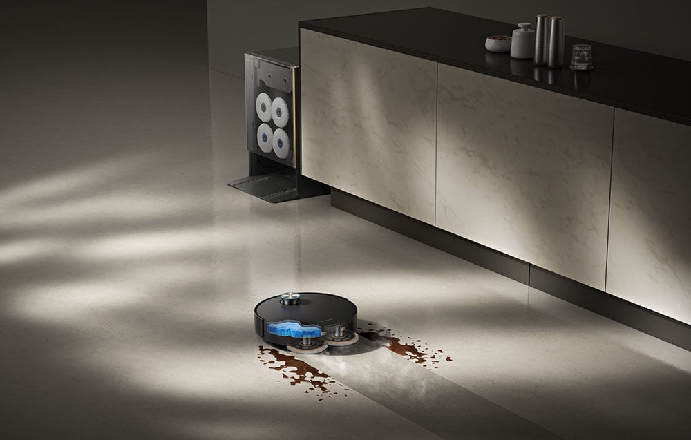A rendszer középpontjában egy korszerű dokkolóállomás áll, amely akár három pár különböző tulajdonságú felmosórongyot is befogad. A robot önállóan felismeri a helyiség típusát, és automatikusan beállítja a megfelelő tisztítóhegyet. Más felmosórongyot használ a nappaliban, mást a konyhában és mást a fürdőszobában - mindezt a lehető leghatékonyabb és leghigiénikusabb takarítás érdekében. Ennek eredményeként nem kell többé kézzel cserélni a tartozékokat, mivel a Matrix10 Ultra ezt a tevékenységet teljesen magától végzi. Ezáltal a takarítás kényelmes és gyors lesz.