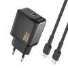 A Dudao A26LEU fali töltőhöz egy strapabíró, fekete, fonott borítású USB-C - Lightning kábel is tartozik. Ez a "GaN Fast Charger Set" néven is ismert csomag azonnali töltési élményt biztosít további tartozékok beszerzése nélkül. Csak csatlakoztassa, és máris élvezheti a gyors töltést Apple eszközei számára.