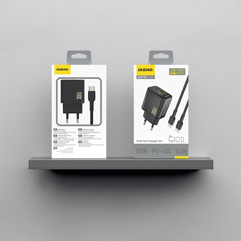 A Dudao A27TCEU fali töltő egy modern, kompakt és nagy teljesítményű megoldás a mobil eszközök, például okostelefonok, tabletek és vezeték nélküli fülhallgatók gyors töltésére. Legyen szó otthoni használatról, irodai munkáról vagy utazásról, ez a 30W-os GaN technológiás töltő hatékony és megbízható energiaellátást biztosít.