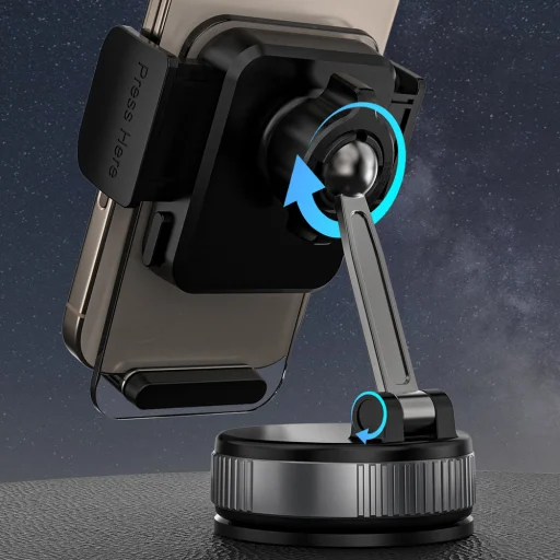 - Teljes körű állíthatóság a tökéletes látószögért: Élvezze a 360°-os forgathatóságot, amellyel könnyedén állíthatja telefonját vízszintes vagy függőleges pozícióba. Ezen felül a 210°-ban összecsukható kar lehetővé teszi a magasság és a dőlésszög optimális beállítását, így mindig megtalálja a legkényelmesebb és legbiztonságosabb látószöget, csökkentve a vezetés közbeni figyelemelterelést.