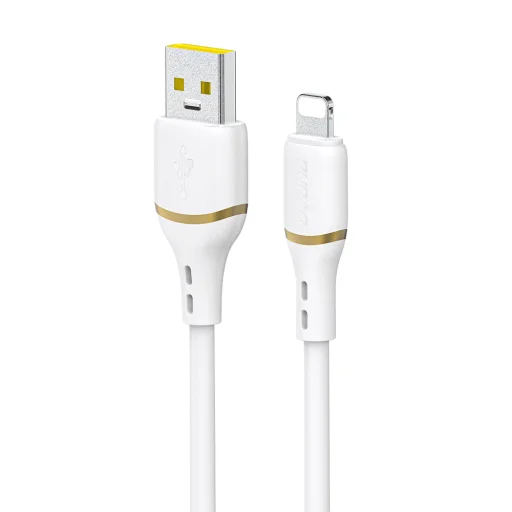 Fedezze fel a Dudao L25L USB-A - Lightning kábelt, amely a modern technológia, a prémium minőség és a felhasználói kényelem tökéletes ötvözete. Ez a letisztult fehér kábel elegáns arany színű csatlakozó részletekkel nem csupán egy kiegészítő, hanem egy megbízható és tartós megoldás Apple eszközei, például iPhone-jai és iPadjei gyors töltéséhez és adatátviteléhez.