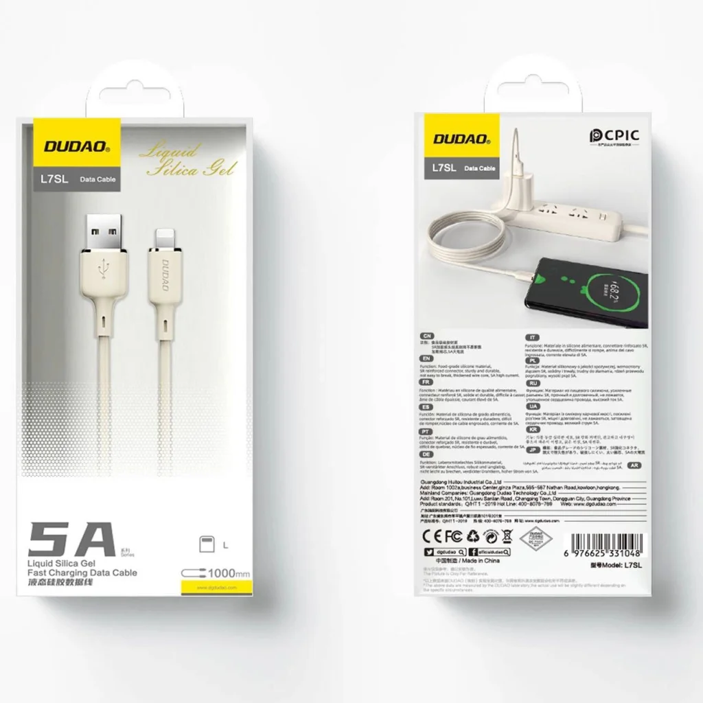 A Dudao L7SL kábel USB-A - Lightning csatlakozókkal és 5 A-es áramerősséggel, 1 méter hosszúsággal, bézs színben elérhető. Kényelem és megbízhatóság - a Dudao L7SL kábellel mindkettőre számíthat. A kábel USB-A és Lightning csatlakozókkal van ellátva, és maximális 5A-es áramerősséggel gyors töltést és adatátvitelt kínál. A szilikon anyag garantálja a puhaságot és biztonságot, 1 méteres hossza pedig tökéletes egyensúlyt teremt a mobilitás és funkcionalitás között. Az SR (feszültségmentesítő) megerősítés növeli a kábel tartósságát, ellenállóvá téve hajlítással és csavarodással szemben. A Dudao L7SL kábel legfontosabb előnyei: - Gyors töltést biztosít. Az 5A-ig terjedő áramok támogatásával a kábel lerövidíti az iPhone vagy iPad töltéséhez szükséges időt. - Hosszú távú használatot garantál. A tartós szilikon anyag nemcsak rugalmasságot, hanem évekig tartó tartósságot is biztosít. - Megkönnyíti a mindennapi használatot otthon és utazás közben. A kábel 1 méter hosszú. - Védelmet nyújt a károsodás ellen. Az SR megerősítés minimalizálja a kábel sérülésének kockázatát a csatlakozóknál. - Univerzális alkalmazást nyújt. A Lightning csatlakozó számos piacon lévő Apple eszközzel kompatibilis. Műszaki adatok: - Márka: Dudao - Modell: L7SL - Csatlakozók: - USB-A - Lightning - Maximális áram: 5A - Anyag: szilikon - Hossz: 1 m - Bézs szín Gyors töltés várakozás nélkül A maximális 5A-es áramerősséggel a Dudao L7SL kábel lehetővé teszi, hogy sokkal gyorsabban töltse fel okostelefonját, táblagépét vagy más Lightning csatlakozós eszközét. Emellett támogatja a gyors adatátvitelt is, ami tökéletes azoknak, akik nem szeretnek időt pazarolni. Tartósság és rugalmasság egyben A magas minőségű szilikonból készült Dudao L7SL kábel rendkívül rugalmas és ellenálló a károsodásokkal szemben. Biztos lehet benne, hogy sokáig szolgálja, függetlenül a használati gyakoriságtól. A tökéletes hossz mindenki számára A 1 méteres hossz tökéletes kompromisszum a funkcionalitás és a kényelem között. Lehetővé teszi, hogy szabadon használja eszközét töltés közben, függetlenül attól, hogy hol tartózkodik. Védelem a sérülések ellen Az SR (feszültségmentesítő) megerősítés a Dudao L7SL kábel csatlakozóinál jelentősen növeli a tartósságát. Ez a védelem minimalizálja a károsodás kockázatát, még intenzív használat mellett is. A Dudao L7SL kábel kompatibilis sok Lightning portot használó eszközzel. Ideális megoldás azoknak, akik például iPhone-t, iPadet vagy AirPods fülhallgatót használnak. Nemcsak gyors töltést biztosít, hanem problémamentesen szinkronizálható az iTunes-szal.