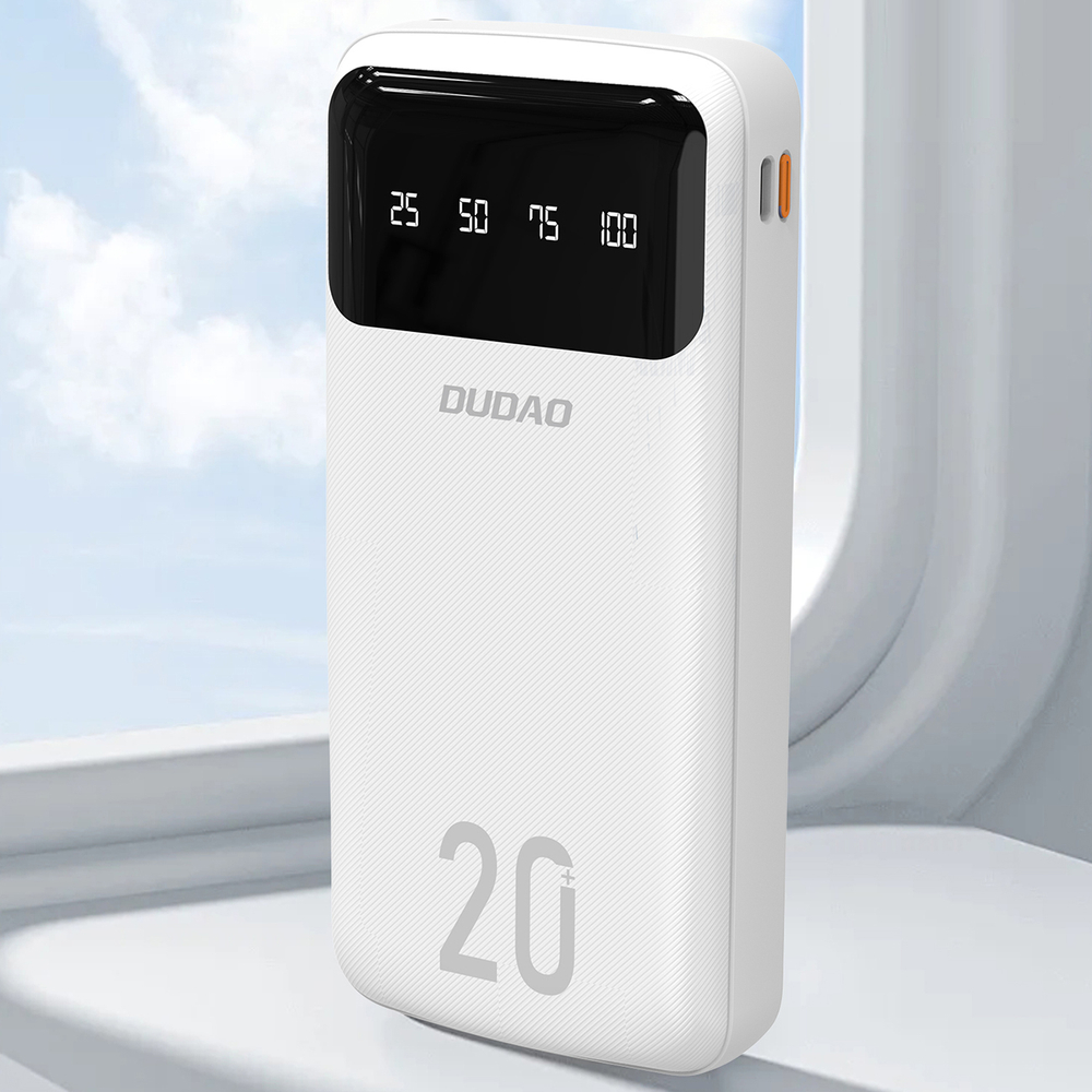 Dudao nagy kapacitású powerbank 3 beépített kábellel 20000mAh USB Type C + micro USB + Lightning fehér (Dudao K6Pro +) - Kivételesen nagy kapacitású powerbank, melynek számos portja lehetővé teszi több eszköz energiájának egyidejű megújítását. Tökéletes társ mobil eszközök számára különböző kirándulások, táborozások vagy egyéb utazások során.