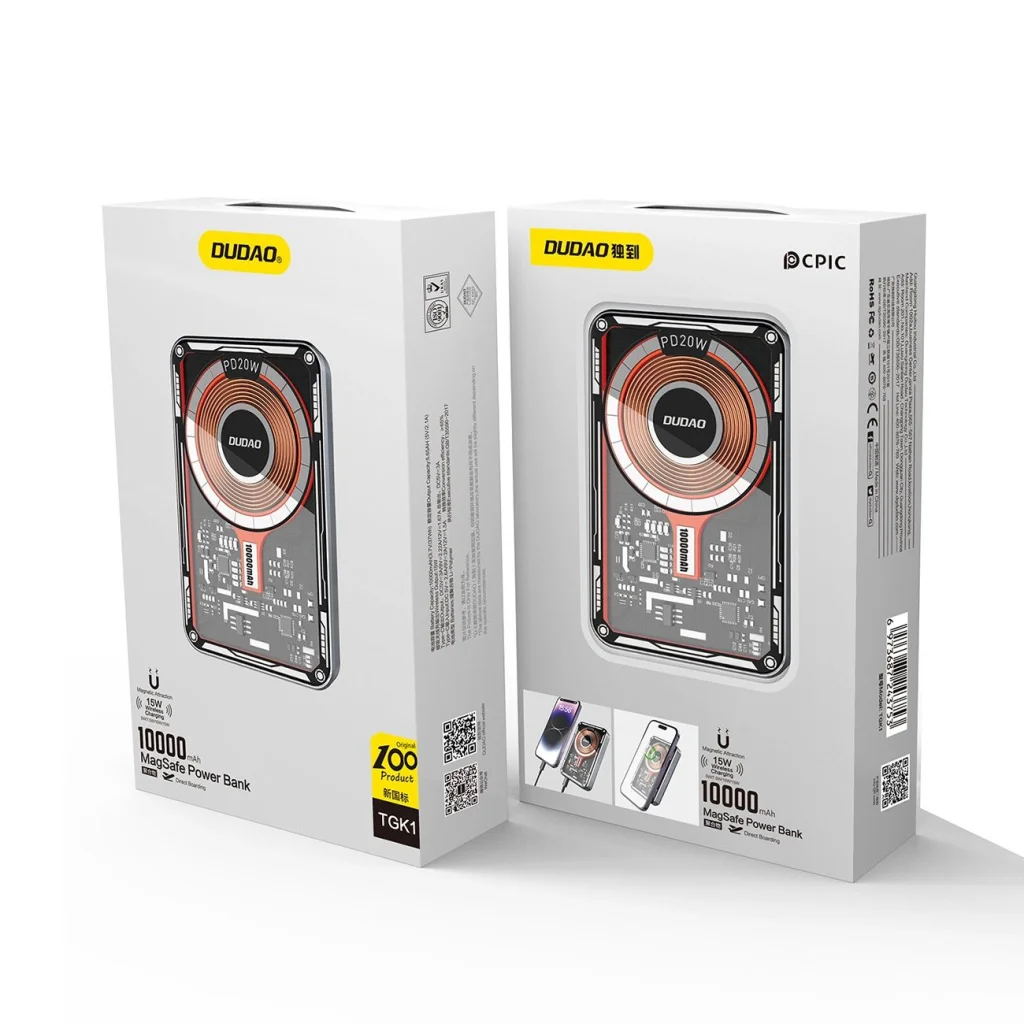 Dudao TGK1 powerbank vezeték nélküli töltővel 20W 10000mAh fekete. Olyan powerbankot keresel, amely többször is feltölti a készülékedet? Válaszd a Dudao powerbankot - ez egy professzionális powerbank mindennapi használatra. Kapacitása 10,000 mAh, amely lehetővé teszi a telefon több mint egyszeri feltöltését. Specifikáció: