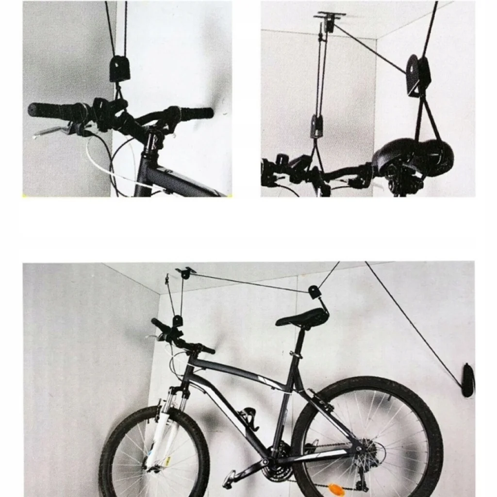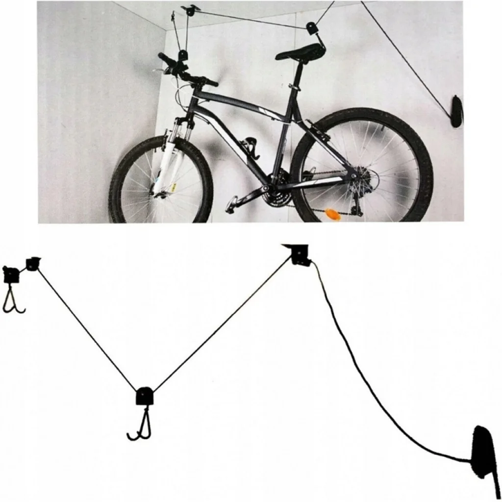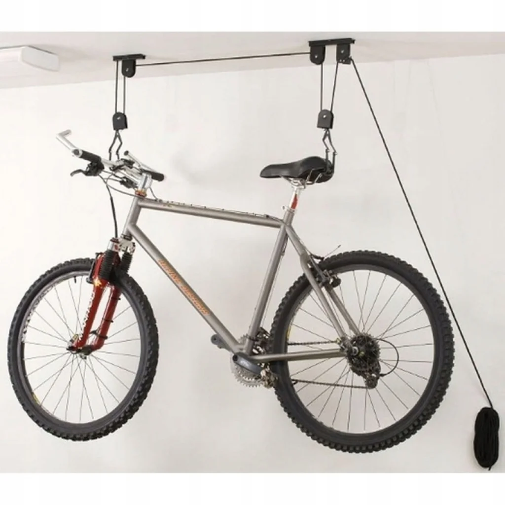 A kerékpár akasztó lehetővé teszi a helytakarékosságot, köszönhetően annak, hogy a kerékpárt a mennyezetre helyezi. A kerékpár két kampóval rögzíthető - az egyik a kormányra, a másik az ülésre. A gumiburkolatnak köszönhetően nincs karcolás veszélye.