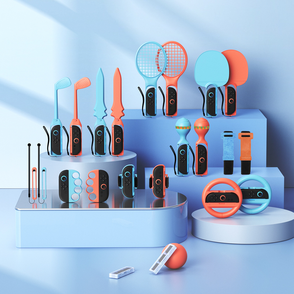 A Dux Ducis 25-az-1-ben egy teljes kiegészítő készlet a Nintendo Switch 2-höz, amely új szintre emeli sport- és versenyjátékaidat. A készlet tartalmaz teniszütőket, kormányokat, golfütőket, csukló- és lábpántokat, valamint Joy-Con markolatokat, amelyek hűen visszaadják a mozgásokat és fokozzák a játék realisztikusságát. Minden alkotóelem tartós anyagból készült, az állítható csúszásgátló pántok pedig biztosítják a biztonságos és kényelmes játékot. Az ergonomikus fogantyúk és az átlátszó kártya szervező megkönnyítik a játékok használatát és tárolását. A mellékelt táska lehetővé teszi a kényelmes szállítást. Ezek a kiegészítők elmerítenek az intenzív és valósághű játékélmények világában.