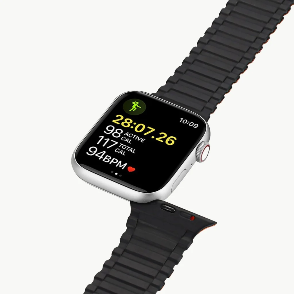 - Jól illeszkedik a csuklóra. A mágneses zárásnak köszönhetően szabadon igazítható a szíj a karhoz.