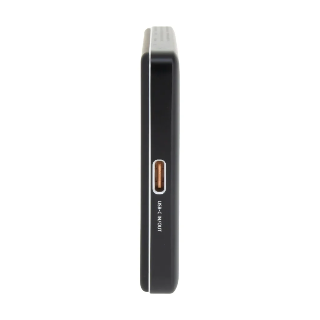 A vezeték nélküli töltés mellett egy USB-C IN/OUT port is rendelkezésre áll, amely lehetővé teszi, hogy kábelen keresztül is töltsön más eszközöket, vagy magát a power bankot is gyorsan feltöltse. Ez a sokoldalúság garantálja, hogy bármilyen helyzetben megoldott legyen a töltés.