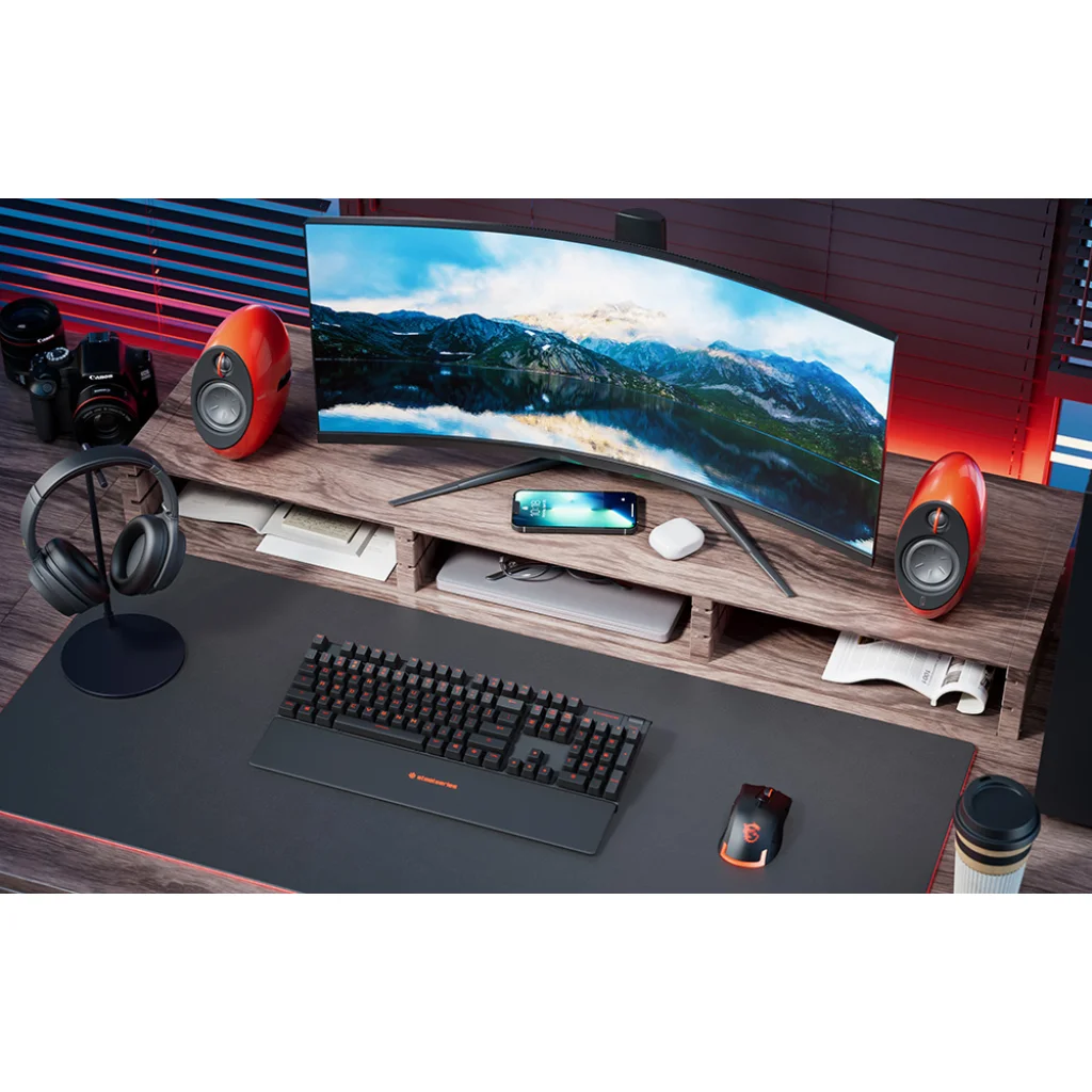 Válassza ki a megfelelő csatlakozási módot. A hangszórók AUX és optikai portokat használnak, a mellékelt kábelekkel pedig sikeresen csatlakoztathatja őket kompatibilis berendezéshez. Ha azonban a vezeték nélküli megoldásokat részesíti előnyben, párosítsa az Edifier e25HD-t a választott eszközzel Bluetooth 5.3-on keresztül. A kezelést viszont megkönnyíti a jobb oldali hangszórón található érintőpanel és a távirányító (tartozék).