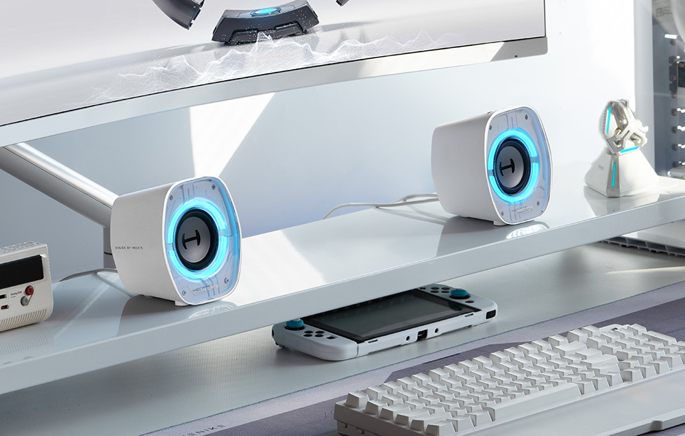 Az Edifier G1000 II hangszórók kifejezetten a játékosok és asztali felhasználók számára készültek, akik erőteljes, játékhoz való felszerelést keresnek. Kompakt méretüknek köszönhetően ideálisak a kis íróasztalokhoz anélkül, hogy sok helyet foglalnának, miközben olyan hangzást kínálnak, amely mélységével és erejével képes meglepni. A jellegzetes, futurisztikus burkolat 9 RGB háttérvilágítási móddal szemet gyönyörködtető, és jól illeszkedik mind a játékhoz, mind a minimalista munkaállomáshoz.