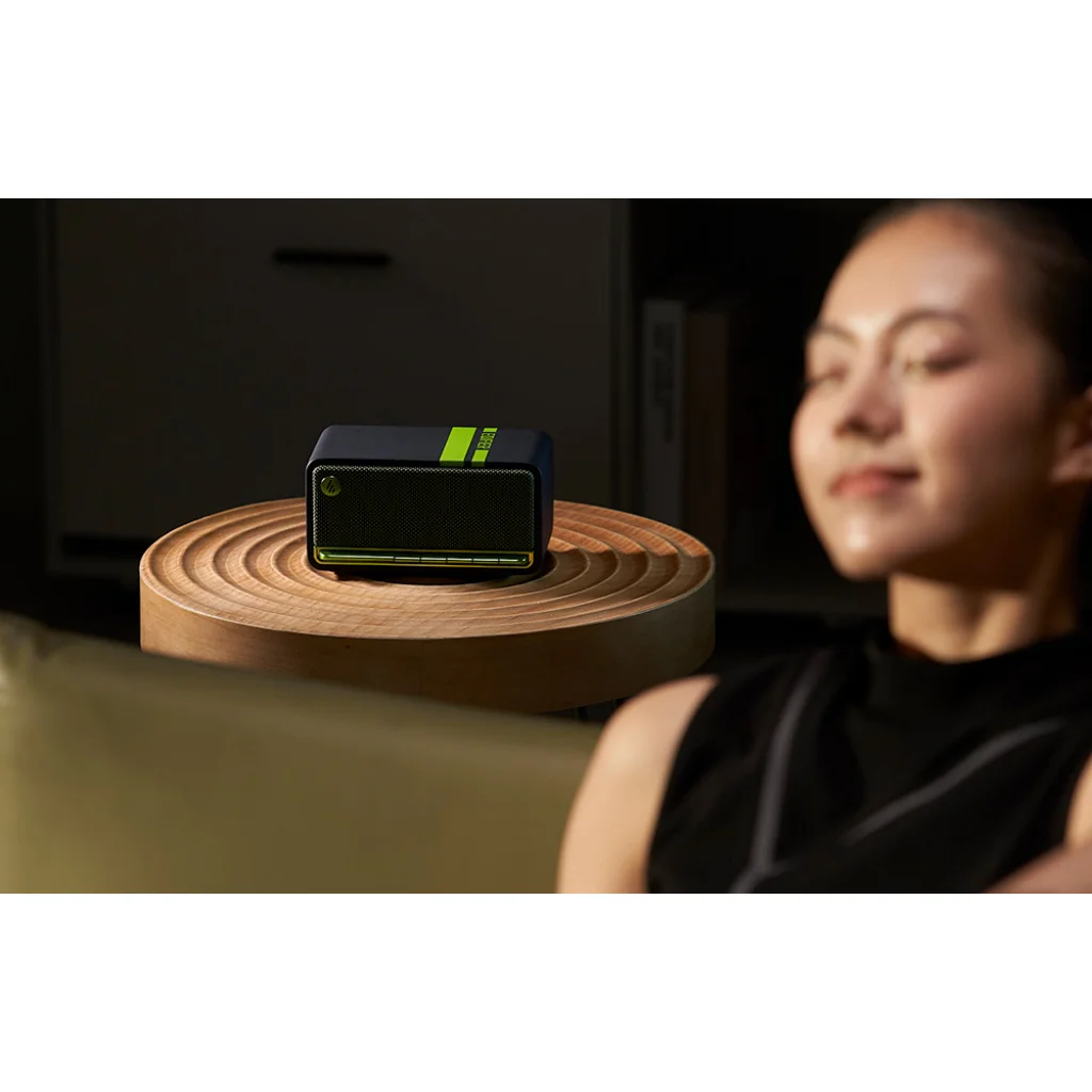 Az Edifier MP230 tökéletesen illeszkedik a modern belső térbe stílusos fekete-zöld kivitelével. A készülék alján található párnák elszigetelik a nem kívánt rezgéseket és stabilitást biztosítanak.