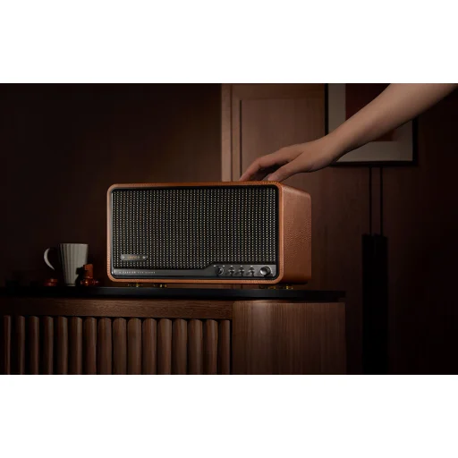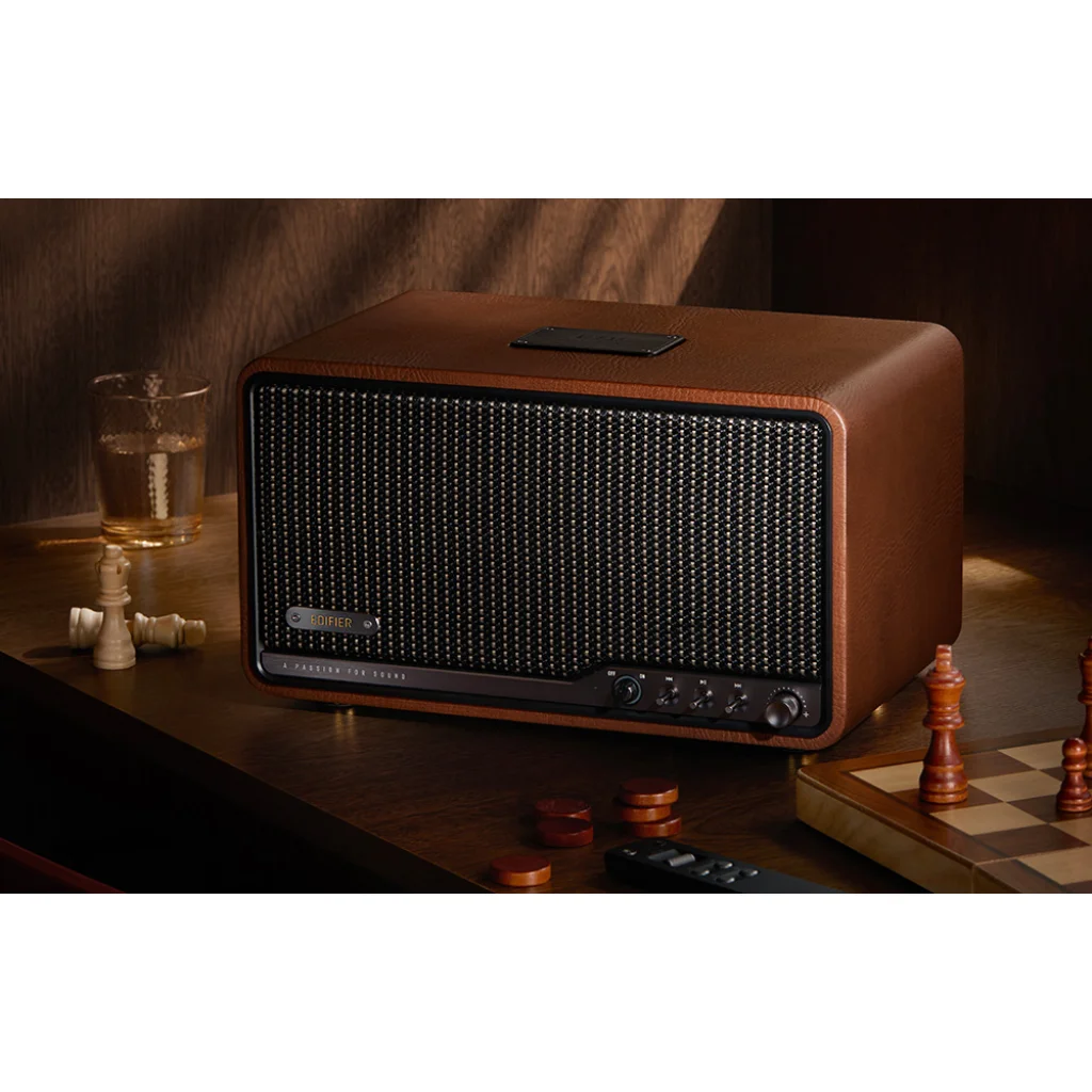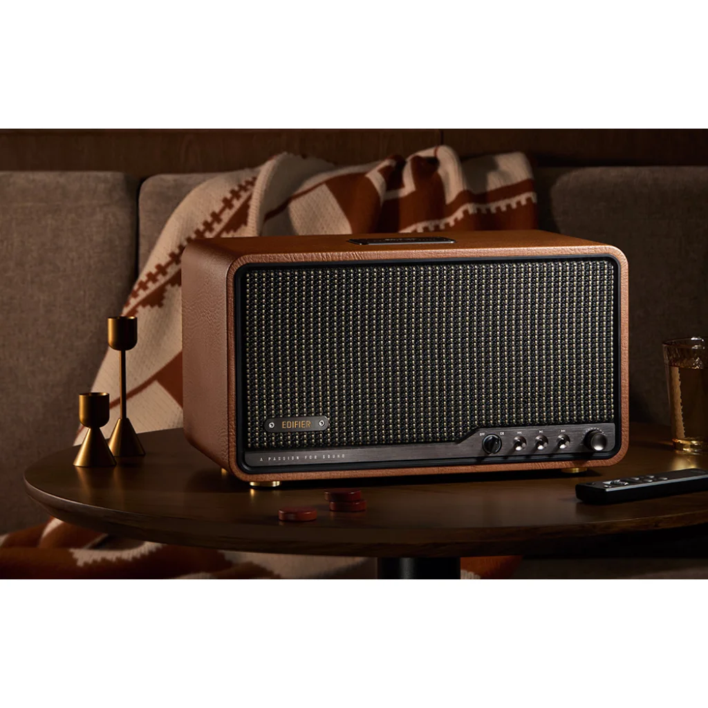 Tapasztalja meg a stílusához illeszkedő, tágas hangzást. A karcsú barna kivitelű Edifier S300 egyesíti a retro bájt a modern teljesítménnyel és funkciókkal, így kábelek, bonyodalmak és kompromisszumok nélkül élvezheti a stúdióminőségű zenét. Ez több, mint egy hangszóró - ez egy mindennapi rituálé, amely a kikapcsolódást jelenti a tiszta, érzelmekkel teli hangok társaságában.