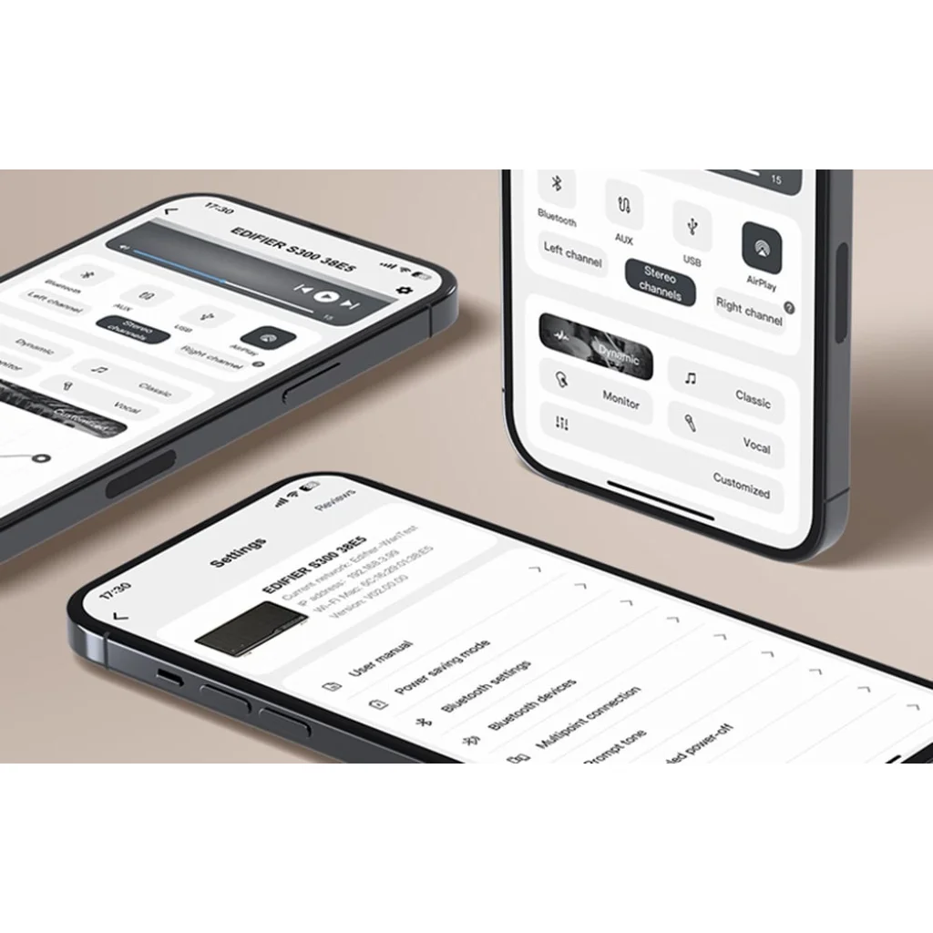 Apple AirPlay 2: A beépített Wi-Fi lehetővé teszi az Apple AirPlay 2-t - streamelj zenét iPhone-odról, iPadedről, Apple TV-ről vagy MacBookodról, és csoportosíts több Edifier S300 hangszórót egy többszobás rendszerbe, szinkronizálva a hangzást az egész otthonodban.