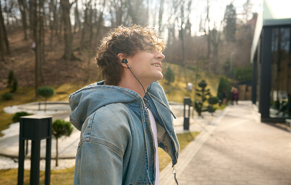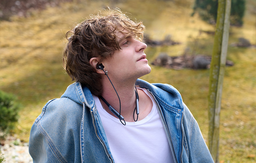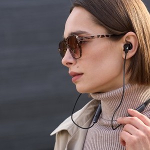 A puha, rugalmas TPE fejpánt szorosan illeszkedik a nyakadhoz, és nem csíp - még több órás viselés után sem. Ugyanakkor a fejhallgató nagyon könnyű (31 g), és a mágneses végeknek köszönhetően könnyen felcsíptethető és elrejthető anélkül, hogy a kábel összegabalyodna.