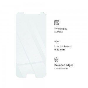 A Blue Star edzett üveg 9H keménységével meghosszabbítja a készülék kijelzőjének élettartamát. Az extrém alacsony, 0,3 mm vastagságnak köszönhetően teljesen észrevétlen és láthatatlan. 100%-ban biztosítja az érintés értékét és a használat szabadságát. Az üveg védi a kijelzőt a törésekkel, karcolásokkal és sérülésekkel szemben. Az oleofób bevonat tiszta képernyőt és ellenállást biztosít az ujjlenyomatokkal és szennyeződésekkel szemben. Az üveg mellé szükséges elemek is tartoznak az önálló összeszereléshez speciális matricákkal, amelyek megkönnyítik az üveg megfelelő elhelyezését. Felhelyezés után, az egész üveg felületének köszönhetően, jól tapad a kijelzőhöz, nem hagyva légbuborékokat. A nem ragadós kialakítás lehetővé teszi az üveg nyom nélküli eltávolítását. Az üveg élei lekerekítettek – a biztonság garantált. Tulajdonságok:Ragasztás: Az egész felületenVastagság: 0,3 mmAnyag: Edzett üvegVédelmi szint: Nagyon magasKinézet: A telefonmodell színű elemekkel kompatibilis A készlet tartalmaz :- fóliát,- port eltávolító kendő a képernyő zsírtalanítására,- tisztítókendőt a légbuborékok eltávolítására,- matricakészletet az üveg pontos elhelyezéséhez a kijelzőn