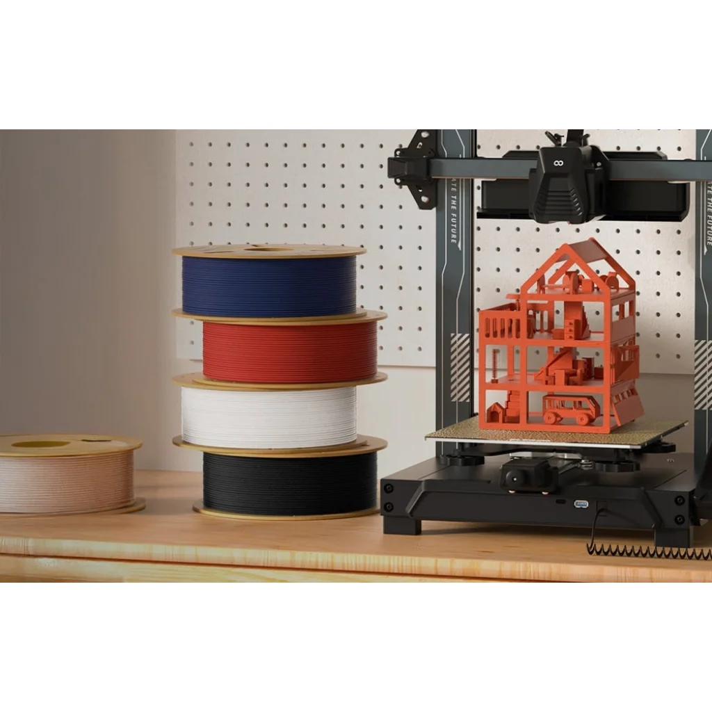 Az ELEGOO Rapid PETG (polietilén-tereftalát - nagy sebességű nyomtatáshoz módosított, hosszú élettartamú műanyag) fehér színű filamentet akár 600 mm/s sebességgel történő nyomtatásra tervezték - minőségromlás nélkül. Jó folyékonyságának és alacsony zsugorodásra való hajlamának köszönhetően az anyag esztétikusan szép modelleket készít, még igényes projektek esetén is vetemedés nélkül.