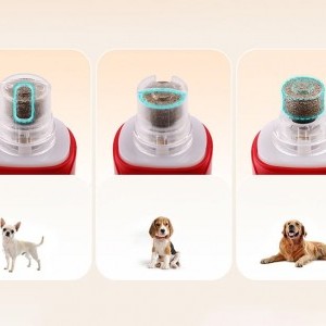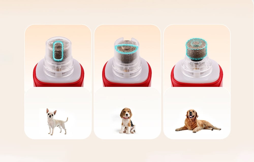 A három speciális lyuknak köszönhetően a körömreszelő alkalmas a kis-, közepes és nagytestű háziállatok karmainak ápolására egyaránt. Ez megkönnyíti a kényelmes kezelést, függetlenül a háziállat méretétől. Ráadásul a körömcsiszoló rendkívül halkan működik, mindössze 45 dB zajszintet produkálva. Ennek eredményeképpen a háziállat nem stresszel az ápolás során, így a folyamat sokkal könnyebbé válik.