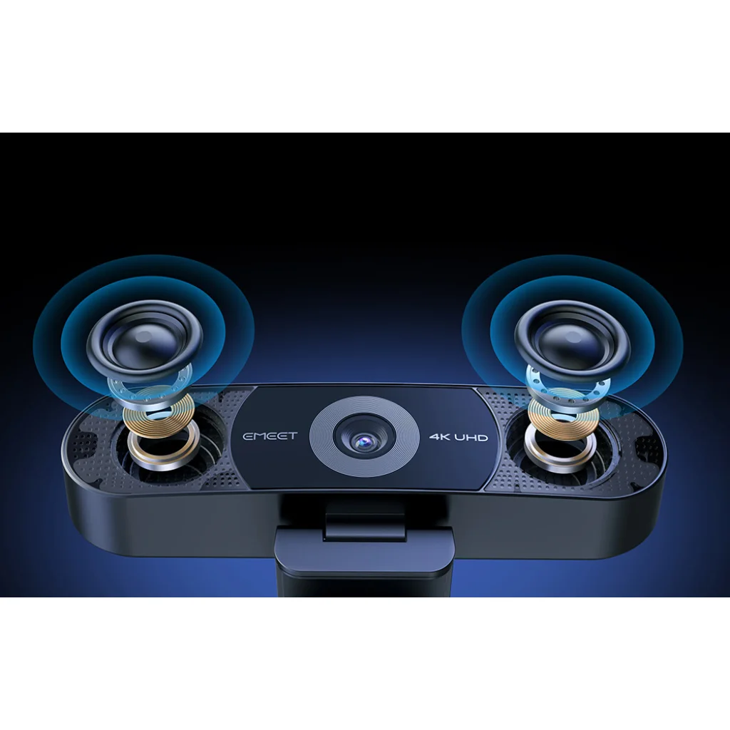 Az EMEET SmartCam C980Pro 4K webkamera professzionális szintre emeli az online értekezleteket, képzéseket, konzultációkat és üzleti hívásokat. A készülék kiváló képminőséget ötvöz fejlett hangrendszerrel, így tiszta hangzást és természetes részletességű képet biztosít. Rugalmas kialakításának és széles látószögének köszönhetően számos helyzetben használható, az egyéni munkától a csoportos hívásokig. A beépített mikrofonok és hangszórók további kiegészítők nélkül is kényelmes kommunikációt tesznek lehetővé, míg az átgondolt kialakítás növeli a mindennapi használat kényelmét.