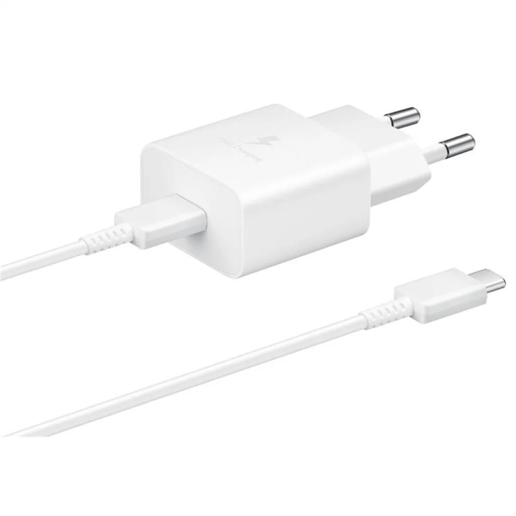 Samsung 15W-os utazó töltő hálózathoz USB-C kimenettel és 1m hosszú USB-C kábellel.