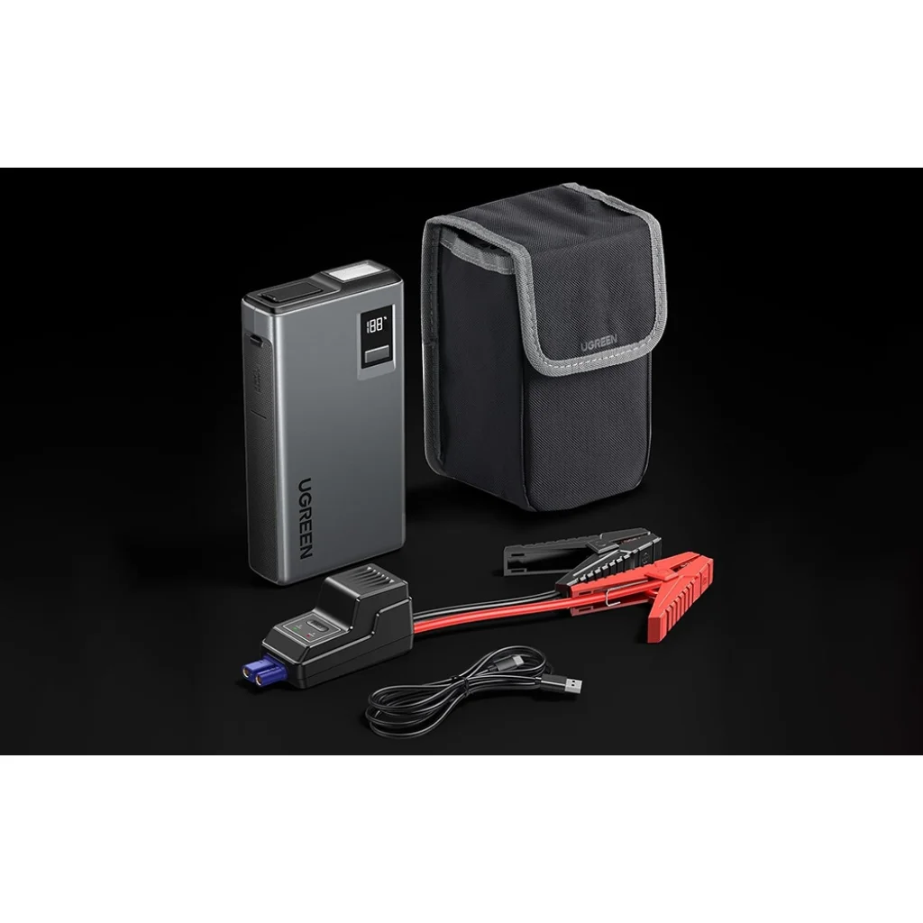 Kompakt és hordozható kialakítás: Sokoldalúsága ellenére az ES702 kompakt méreteivel (161,5 x 85 x 33 mm) és könnyű, mindössze 470 g-os tömegével tűnik ki. Az indítókábeleket, egy USB-A-ból USB-C-be csatlakozó kábelt és egy használati útmutatót is talál - mindezt egy praktikus hordtáskába csomagolva, amelyet könnyedén tárolhat a csomagtartóban vagy az autó rekeszében.