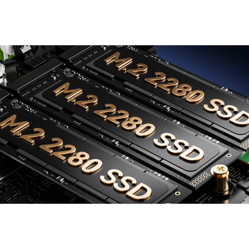 SSDM.2 2280 1 TB (gyári), támogatás 8 TB-ig / M.2 2280 x2 (bővítés) támogatás 8 TB-ig, összesített támogatott kapacitás: 8 TB x 3 = 24 TB