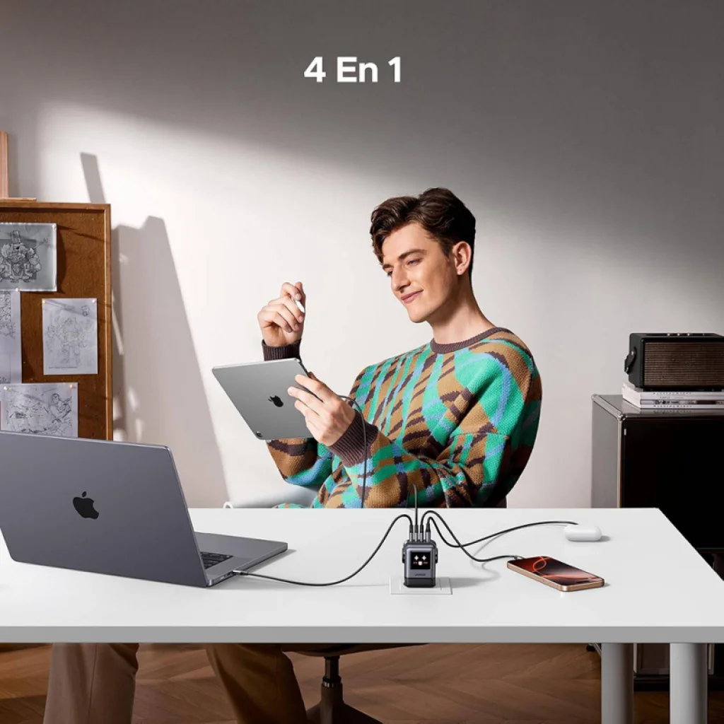Az UGREEN X688 Uno négy porttal van felszerelve: 3 darab USB-C és 1 darab USB-A. Ez lehetővé teszi akár négy eszköz egyidejű töltését, maximális sokoldalúságot és kényelmet kínálva otthon vagy az irodában. Nem kell több töltőt magával vinnie, ez az egy eszköz mindent megold.