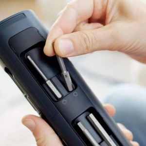 A beépített mágnestartóval ellátott, stabil alumínium tokban a csavarhúzó és a bitek könnyen tárolhatók. A kihúzható mechanizmus gyors hozzáférést biztosít, a markolat és a bitek mágnesezettsége pedig megkönnyíti a biztonságos tartást.
