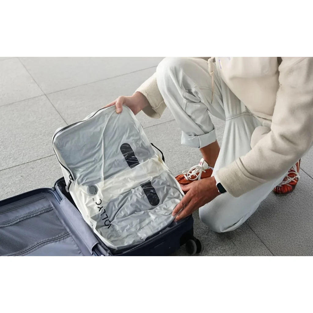 A Flextail EZYPACK kompressziós kocka egy kompressziós utazási szervező, amely lehetővé teszi, hogy jelentősen csökkentsd ruháid térfogatát csomagoláskor. A kialakítás lehetővé teszi, hogy kiszívd a levegőt a táskából, így ruháid akár 85%-kal kevesebb helyet foglalnak a bőröndödben. Ez a megoldás növeli a poggyászod térfogatát anélkül, hogy megváltoztatná a bőröndöd méretét.