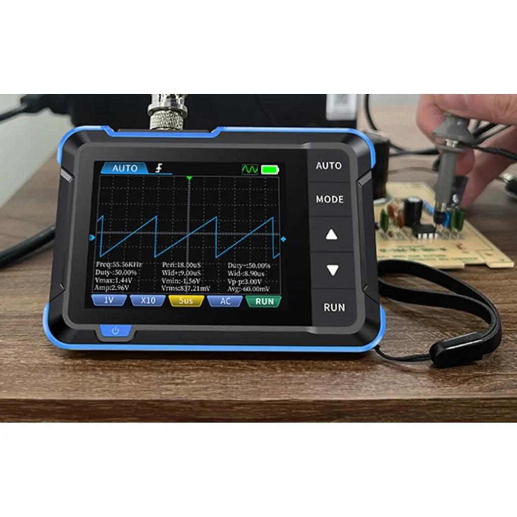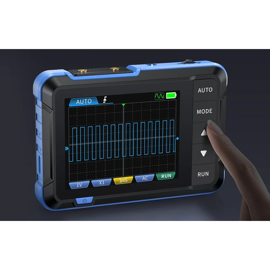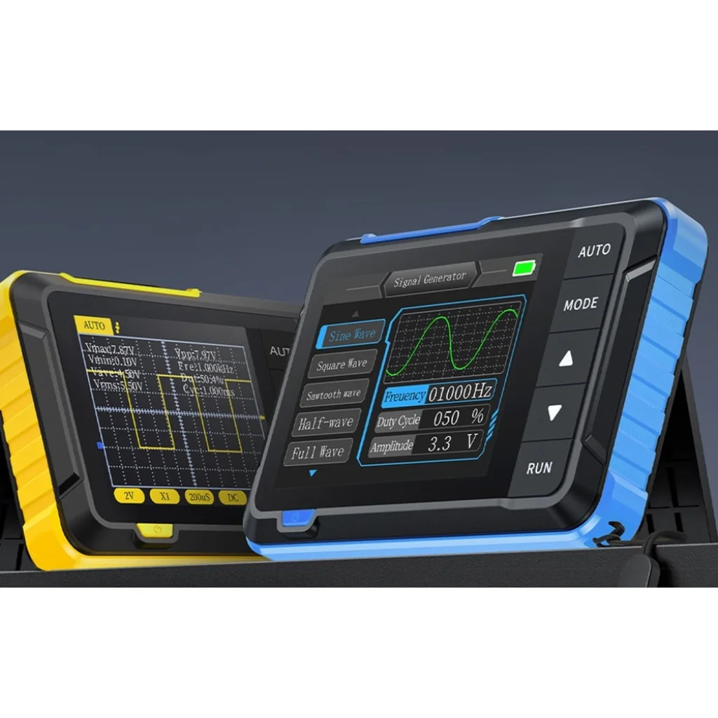 Az FNIRSI DSO153 minden részletre odafigyelve készült. A kiváló minőségű kivitelezés, a jól reagáló gombok, a 90°-ban összecsukható állvány és a kényelmes üzemmódváltó élvezetessé teszik a készülék használatát. Az USB-C port gyors töltést és szoftverfrissítést tesz lehetővé, az akár 8 nyelv támogatása pedig sokoldalú eszközzé teszi az oszcilloszkópot világszerte.