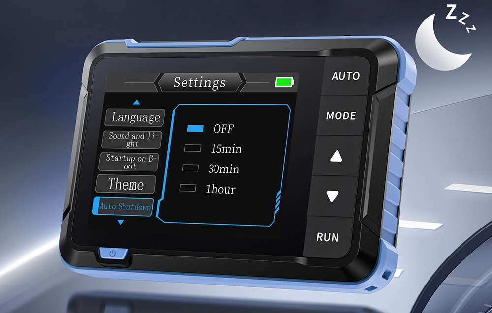 A beépített 1000 mAh lítium akkumulátor hosszú üzemidőt biztosít újratöltés nélkül, így a készülék nélkülözhetetlen a terepen végzett munka során. Ezenkívül az automatikus kikapcsolás inaktív időszak után energiát takarít meg, és meghosszabbítja a készülék élettartamát.