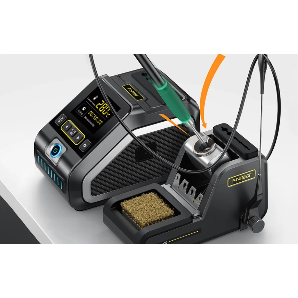 Az FNIRSI DWS-200 F egy fejlett forrasztóállomás, amely a 200 wattos teljesítményt intelligens hőmérséklet-szabályozással és azonnali felmelegítéssel kombinálja. A 2,8"-os színes TFT-képernyővel könnyedén nyomon követheti a hőmérsékletet valós időben a három megjelenítési mód egyikében. A gyors felfűtési (1 másodperc) és olvadási (3 másodperc) idővel időt takarít meg és növeli a termelékenységet, a PID-rendszer pedig 100°C-tól 450°C-ig biztosítja a hőmérséklet stabilitását.