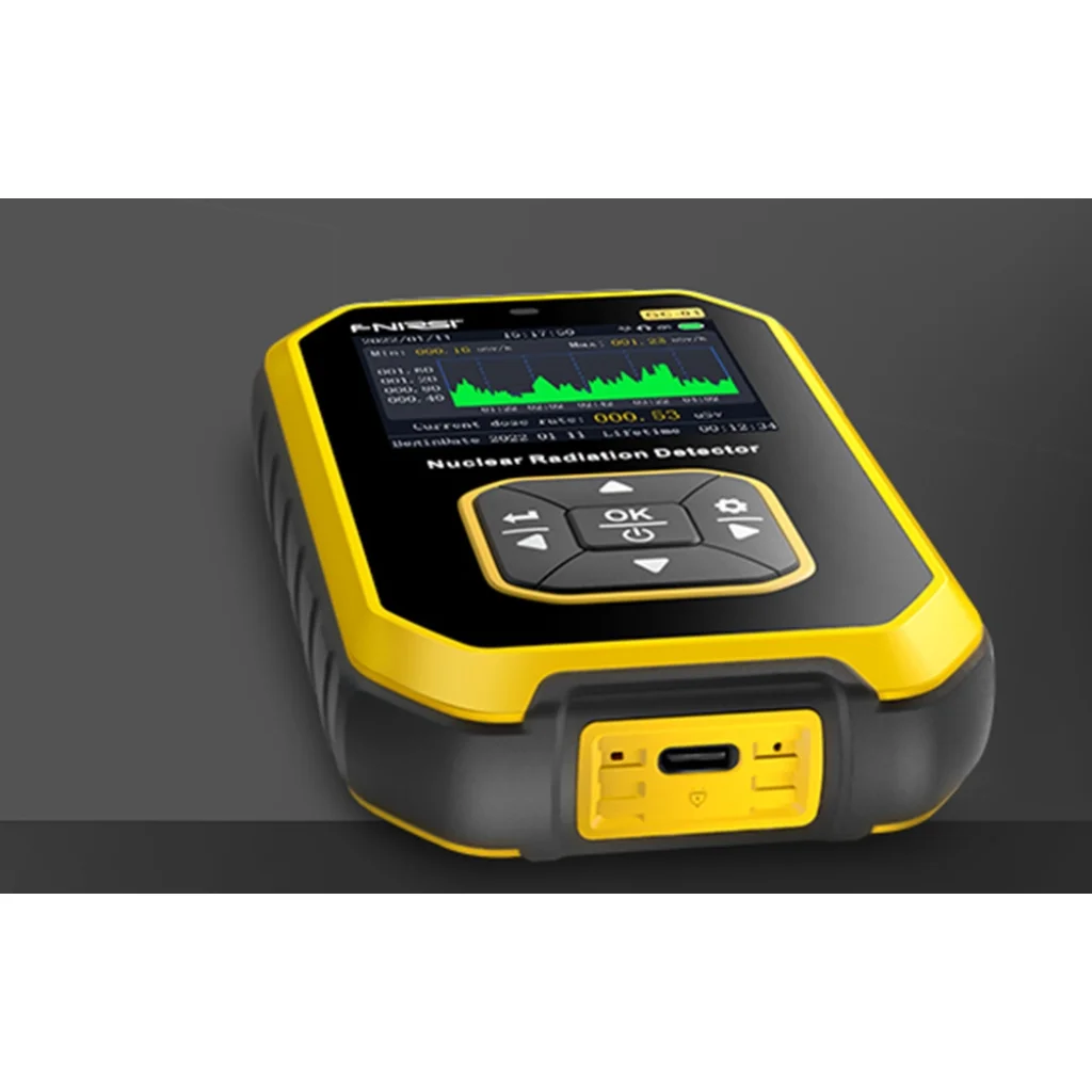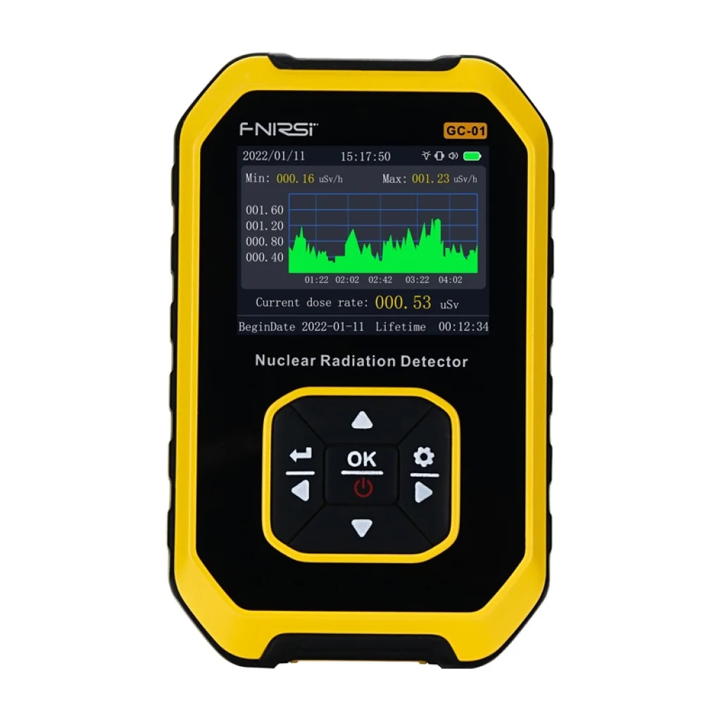Az FNIRSI GC-01 egy kompakt és precíz Geiger-számláló, amely lehetővé teszi az ionizáló sugárzás valós idejű megfigyelését. A készülék nagy LCD-képernyővel rendelkezik, grafikus sugárzási szint grafikonnal, érzékeny Geiger-Müller-számlálóval és riasztási funkcióval (hang, fény és rezgés) a beállított érték túllépésekor. A készülék hasznosnak bizonyul az élelmiszerekben, fémekben, építőanyagokban, ipari berendezésekben, valamint a röntgen- és CT-diagnosztikában előforduló sugárzás kimutatására. Az 1100 mAh kapacitású akkumulátort USB-C porton keresztül töltheti.