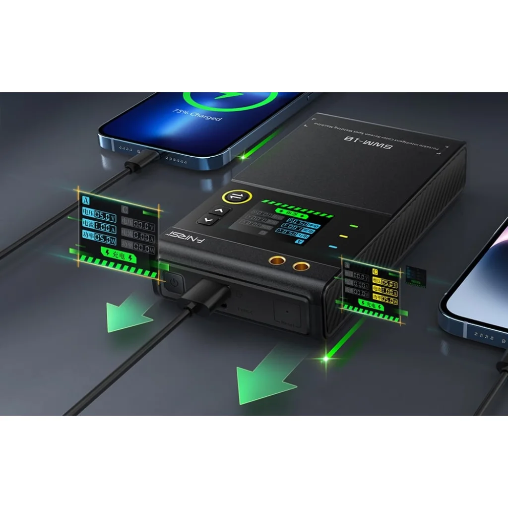 A FNIRSI SWM-10 hordozható 2 az 1-ben hegesztőgép lehetővé teszi a telefonok, powerbankok, hengeres akkumulátorok vagy egész csomagok celláinak hegesztését. Állítható paramétereinek köszönhetően könnyen alkalmazkodik a különböző feladatokhoz.
