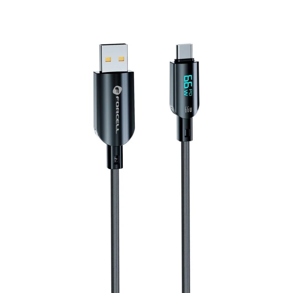 Egy univerzális USB-A - USB-C kábel, amely 66 W magas teljesítményű, gyors és biztonságos töltést tesz lehetővé okostelefonok és tabletek számára. A beépített LCD kijelző tájékoztat a töltési teljesítményről, amely megkülönbözteti a kábelt a szokványos modellektől. Tartós és sérülésálló. Egy masszív nejlon fonat és a megerősített szerkezet növeli a kábel kopás-, hajlítás- és egyéb mechanikai sérülésekkel szembeni ellenállását. A szolid kivitelezés hosszú élettartamot biztosít, még intenzív napi használat mellett is. Gyors és hatékony töltés. A kábel támogatja a Quick Charge 4.0 és a SUPERVOOC gyorstöltési technológiákat, lehetővé téve az USB-C-eszközök hatékony energiaellátását. Kompatibilis az Apple CarPlay® és az Android Auto™ rendszerekkel. A kábel támogatja az Apple CarPlay és az Android Auto rendszereket, lehetővé téve, hogy az autó kijelzőjén közvetlenül elérhetők legyenek az okostelefon funkciói. USB-n keresztül csatlakoztatva könnyű navigációt, zenelejátszást, valamint a névjegyek és üzenetek elérését biztosítja – mindezt anélkül, hogy a telefonhoz kellene nyúlni. Ez a megoldás fokozza mind a vezetési biztonságot, mind a kényelmet. Specifikáció: Modell: C272, Áramerősség: 3 A, Teljesítmény: 66 W, Hosszúság: 120 cm, Gyorstöltési támogatás: Quick Charge 4.0, SUPERVOOC, Adatátviteli sebesség: USB 2.0 480 Mb/s.