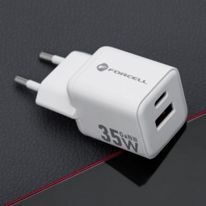 A Forcell Mini GaN III fali töltő magas hatékonyságot kínál minimális méretben. Támogatja a Power Delivery (PD) és a Quick Charge 4.0 (QC 4.0) szabványokat, gyors töltést biztosítva okostelefonokhoz, táblagépekhez és más eszközökhöz. Egy USB-C és egy USB-A porttal szerelve krepes egyidőben két eszközt is tölteni. A GaN III technológia a technológiai fejlődés új lépcsőfoka. A GaN töltők még kisebbek, energiahatékonyabbak és erősebbek. Ezen kívül kompatibilisek a modern töltési szabványokkal. Kicsi és praktikus méretének (7,5 cm x 3 cm) köszönhetően a töltőt könnyű tárolni és szállítani. Otthon és útközben is nagyszerűen használható. A Forcell Mini GaN III támogatja a legújabb gyors töltési protokollokat, köztük a Quick Charge 4.0 és a Power Delivery szabványokat. Ezáltal gyorsan és biztonságosan töltheti fel eszközeit, minimálisra csökkentve a várakozási időt. Univerzális, a töltő számos elektronikus eszközzel kompatibilis. CE és RoHS minősítéssel rendelkezik, a beépített védelem pedig megelőzi a túlmelegedést, túlterhelést és a feszültségingadozásokat. Specifikáció: Modell: VT-35C Bemenet: 100-240 V~50/60 Hz, 1.0 A (max). USB-C kimenet: 5 V/3 A, 9 V/3 A, 12 V/2.5 A, 15 V/2.33 A, 20 V/1.75 A USB-A kimenet: 5 V/3 A, 9 V/2 A, 12 V/1.5 A USB-C + USB-A kimenet: 5 V/3 A Teljes kimeneti teljesítmény: 35 W (max).