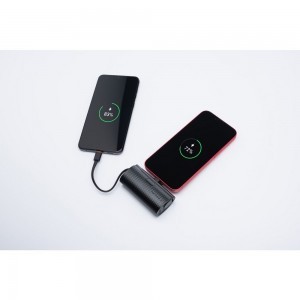 Élvezd a szupergyors töltést a 20 wattos Power Delivery (PD) és Quick Charge™ 3.0 technológiák támogatásának köszönhetően. A beépített Lightning® csatlakozó kifejezetten Apple készülékekhez lett tervezve, így iPhone-od, iPad-ed vagy AirPods Pro-d mindig gyorsan és közvetlenül tölthető, külön kábel nélkül. Emellett a powerbank egy beépített USB-C kimeneti kábellel is rendelkezik, amellyel egyidejűleg két eszközt is tölthetsz (pl. egy iPhone-t és egy USB-C-s Android telefont, ahogy a képeken is bemutatjuk). A powerbank töltése a különálló USB-C bemeneti porton keresztül történik, és a "pass-through" funkciónak köszönhetően akár a powerbank töltése közben is tölthetsz egy másik eszközt. Csak csatlakoztasd, és már tölthetsz is – ez a „Plug & Power” elv.